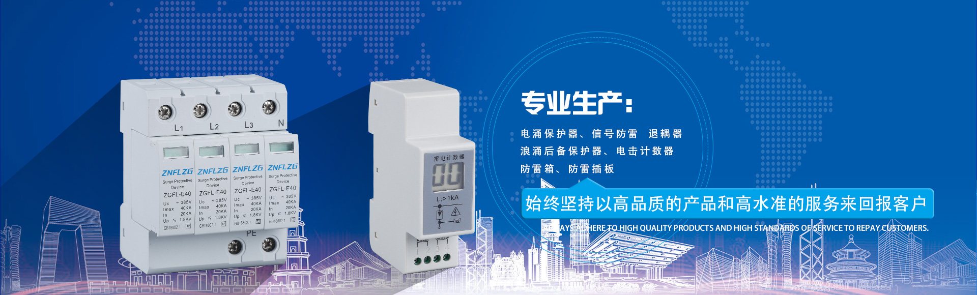 公司主導產(chǎn)品有電涌保護器、信號防雷、退耦器浪涌后備保護器、電擊計數(shù)器、防雷箱、防雷插板。